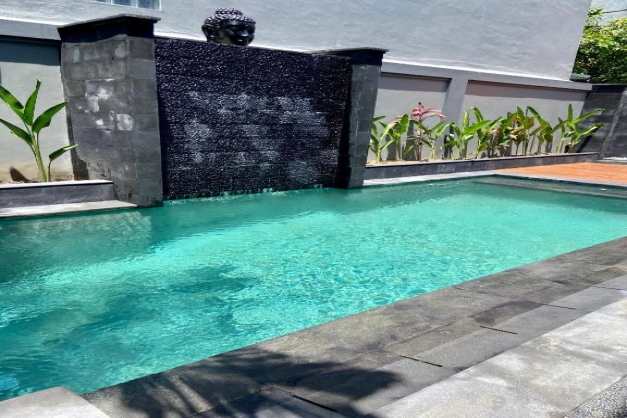 Villa Zakira Legian will be a luxury 3 bedroom’s all on one level, so no stairs to climb (tick), Large Pool with ample space around to enjoy the sun & relax (tick) 3 easy walk in steps to access the pool (tick), Enclosed with bifold doors a Indoor Kitchen/Living/Dining space with air con or ceiling fan (tick).